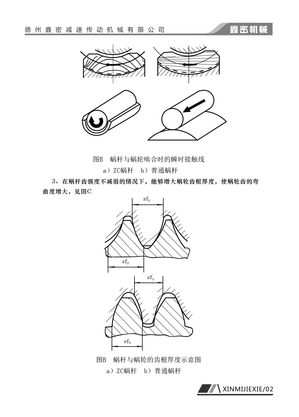 齒型傳動(dòng)類型:蝸桿齒型加工包含ZC1,ZI,ZA、ZN、ZK,蝸桿頭數(shù)1-6頭, 蝸輪和蝸桿兩共軛齒面是凹凸嚙合,當(dāng)量曲率小,因而單位齒面壓力減小,接觸強(qiáng)度提高.蝸輪蝸桿機(jī)構(gòu)常用來(lái)傳遞兩交錯(cuò)軸之間的運(yùn)動(dòng)和動(dòng)力。